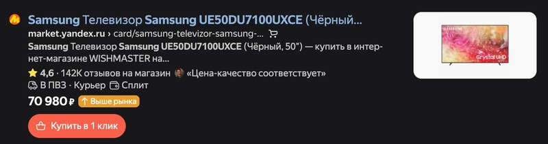 Фактически, это инструмент, который позволяет Яндексу понять, что на конкретной странице сайта размещен товар, и отобразить его в поиске в максимально привлекательном виде — с фото, ценой, рейтингом, условиями доставки и оплаты.