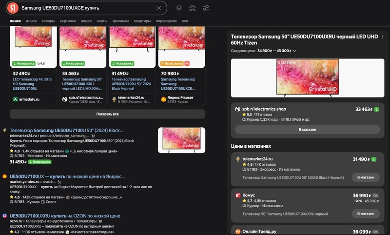 Яндекс Товары — мощный инструмент Яндекса, помогающий интернет-магазинам показывать свои товарные карточки в органической выдаче: в специальных товарных блоках, карточках и расширенных сниппетах.
