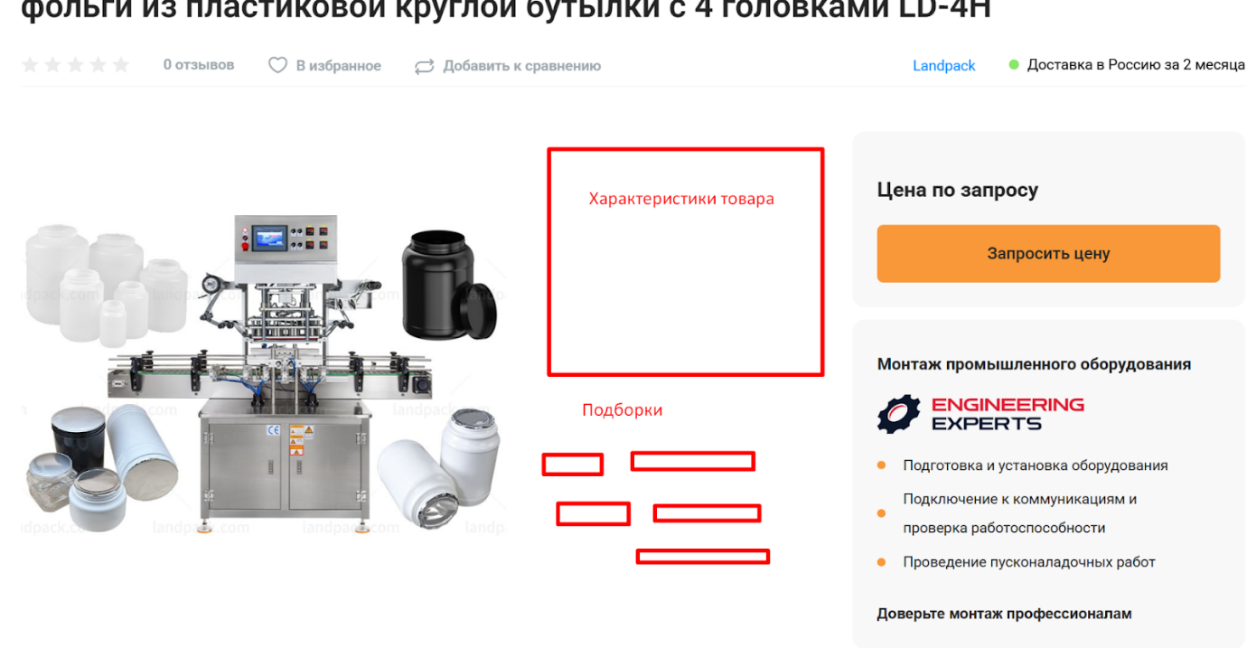 Карточка товара должна была включать в себя обзоры и отзывы — это облегчает выбор сложного оборудования. Кроме того предполагалось разработать калькулятор, позволяющий получить расчет на готовую технологическую линию прямо на сайте.